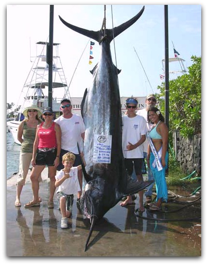 The blue marlin is one of the most coveted fishing pursuits in the world. What's the premier destination for blue marlin? Kona, of course – where the Blue marlin weighing more than 1,000 pounds have been recorded than anywhere else. Our boat, even holds the 50-lb record for a 1,166 pounds blue marlin. Some commercially caught blue marlin near Hawaii have exceeded 2,000 pounds.