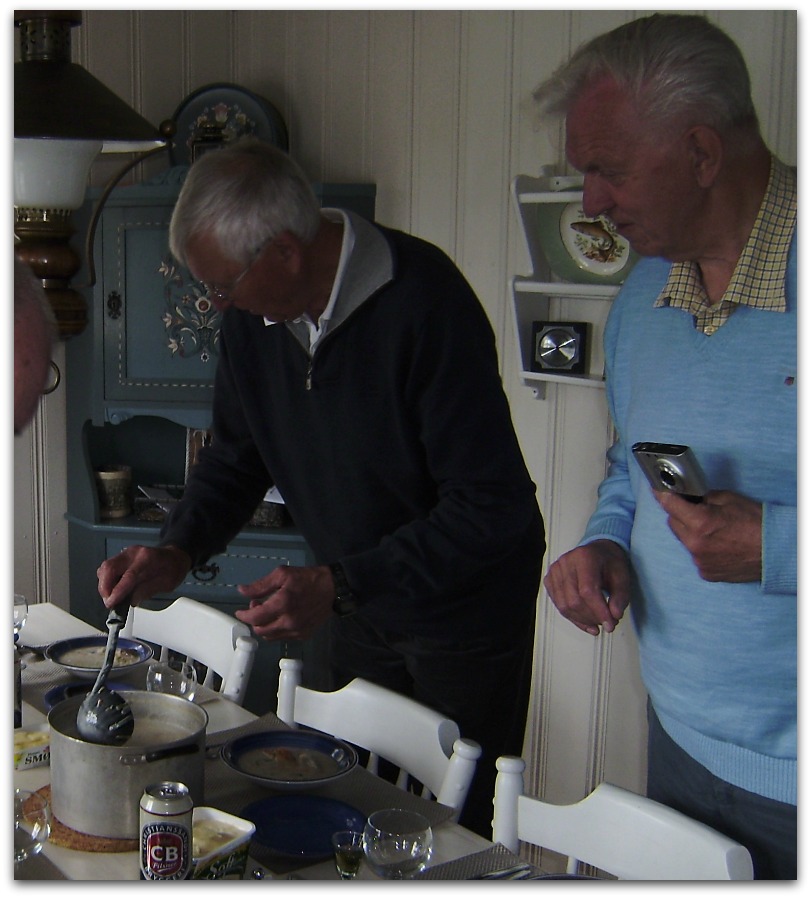 hadde som aftensmat ved fremkomst første kvelden. Helge sørget for oppvarming