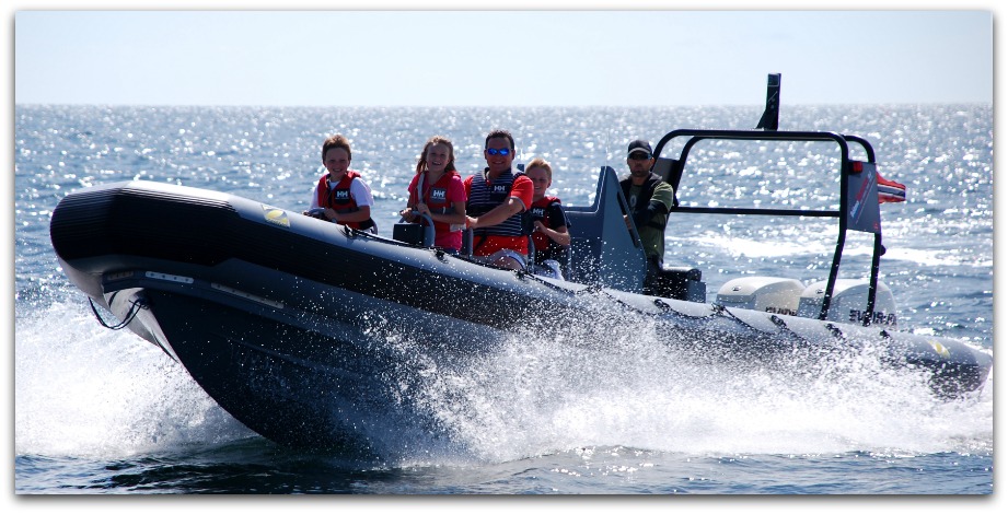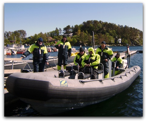 sportslig båttur i skjærgården. Båten var en såkalt RIB (En stor gummibåt med